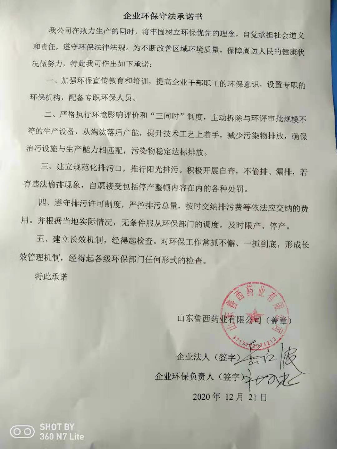 企业环保守法承诺书